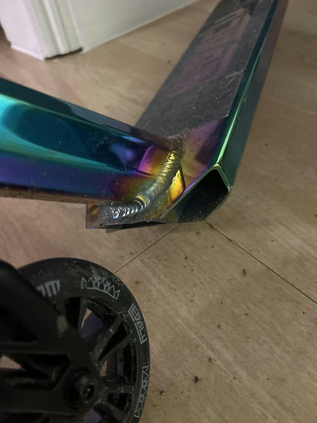 With a steel-boxed deck and Hi-Ten steel Y handlebar, this scooter is made from high-quality, durable parts, at a low price, plus a gorgeous Neochrome coating to make sure you stand out from the crowd.